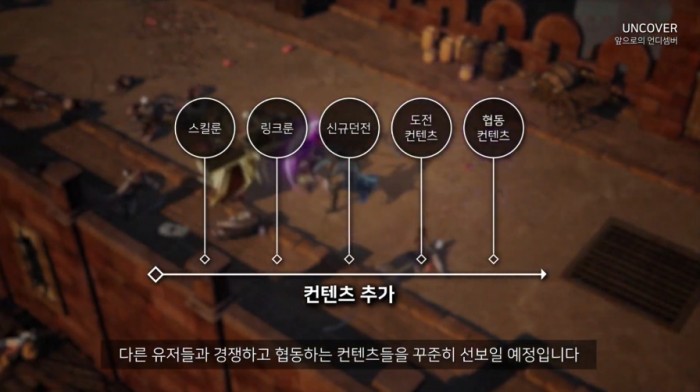 업데이트는 콘텐츠 추가와 확장이라는 두 가지의 방향성을 가지고 진행된다. 콘텐츠 추가에 대한 방향성은 횡적 확장이다. 신규 스킬 룬과 링크 룬, 그리고 새로운 던전 등이 추가되며 성장을 체감할 수 있는 도전형 콘텐츠와 함께 다양한 룰을 바탕으로 다른 플레이어와 함께 경쟁하고 협동하는 콘텐츠를 꾸준히 선보인다는 계획이다.