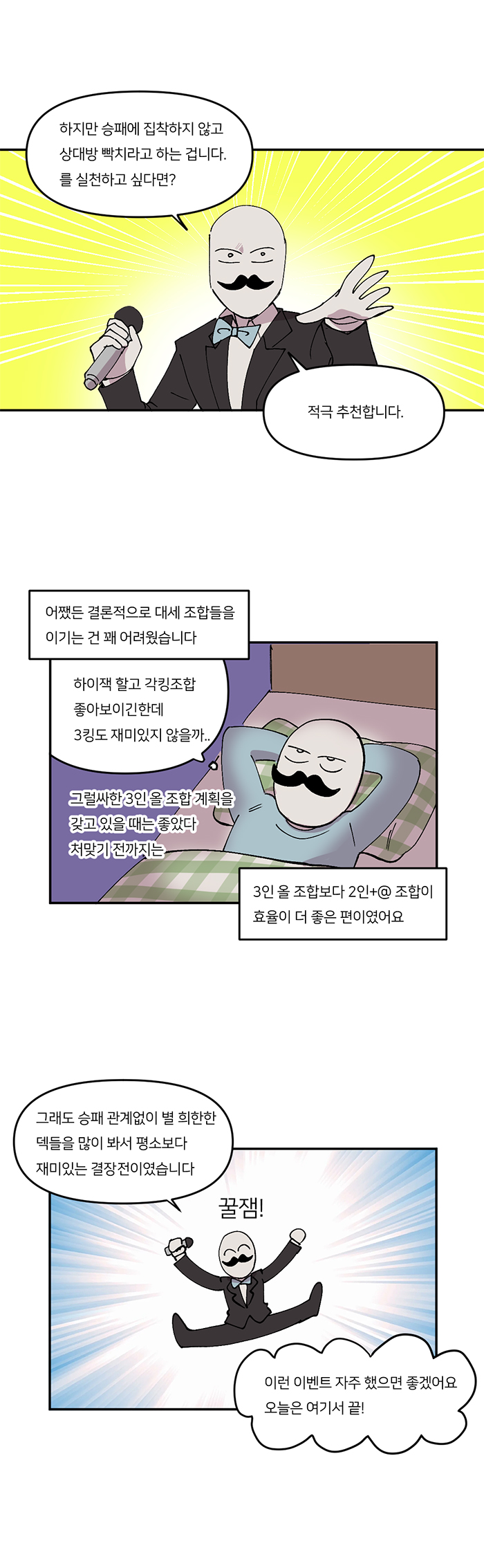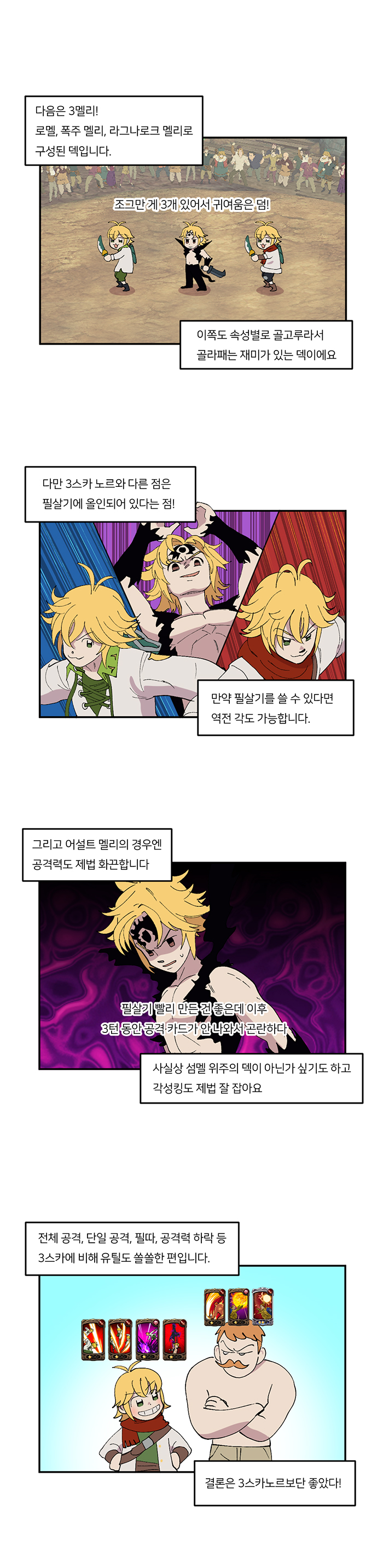 웹툰은 게이머들 사이에 가장 많이 궁금했던 3에스카노르, 3멜리오다스, 3고서 세 종류를 다루고 있다. 모두 PVP에서 큰 활약을 했거나 현재까지 현역으로 활동하는만큼 많은 기대를 받았던 영웅들이다.
