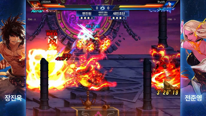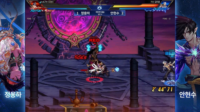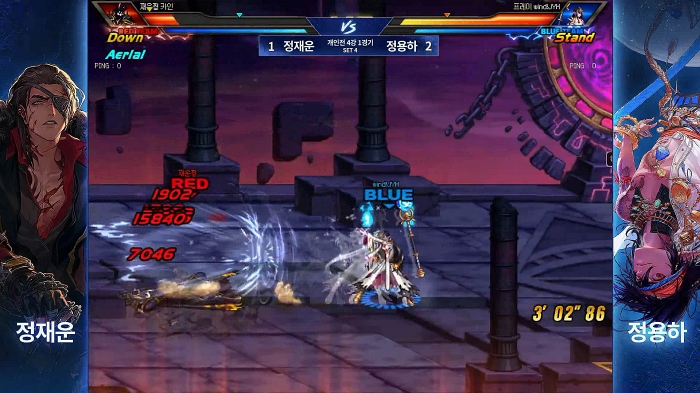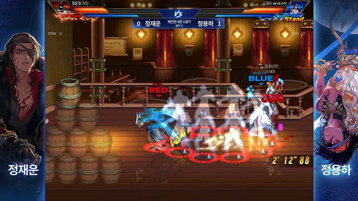두 번째 판은 정재운 선수의 반격이 펼쳐졌다. 첫 콤보를 안정적으로 넣고 난 뒤 정용하 선수가 텔레포트로 벗어나려는 위치에 정확하게 분신을 깔아놔 퇴로를 차단, 강력하게 압박을 넣어준 뒤 정용하 선수를 잡아낸다.