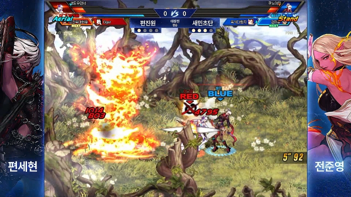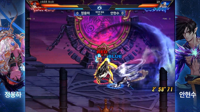 첫판은 정용하 선수가 완전히 리드했다. 혼백참을 쓰는 안현수 선수 뒤를 기본 어퍼인 윈드 스트라이크로 띄워 마무리 짓는 노련함을 보여주며 기세 좋게 시작한다. 이에 질세라 두 번째 판은 안현수 선수가 완전히 반대의 모습을 보여주며 한 콤보도 아닌 단 한 대도 허용하지 않고 정용하 선수를 잡아낸다.