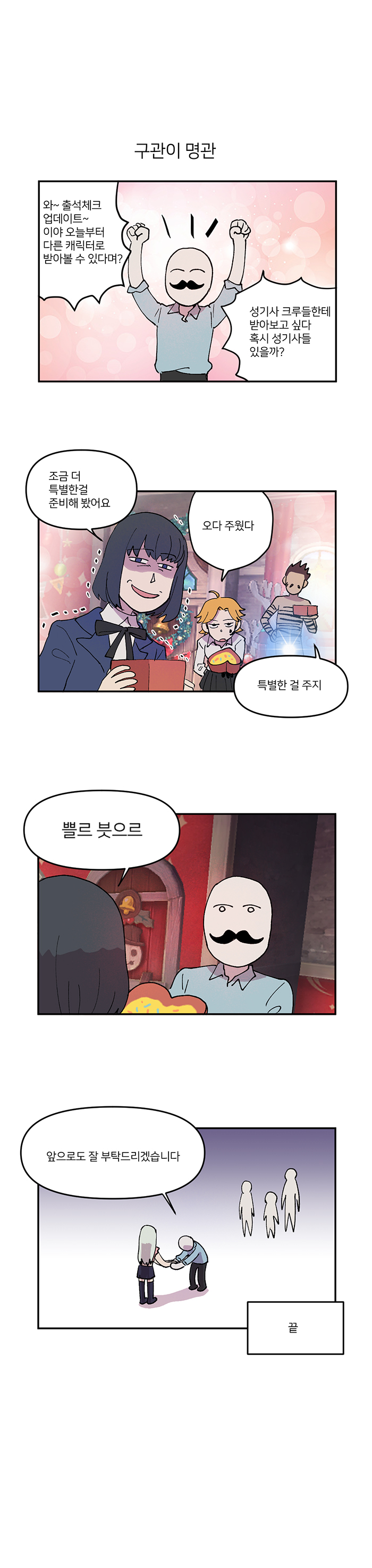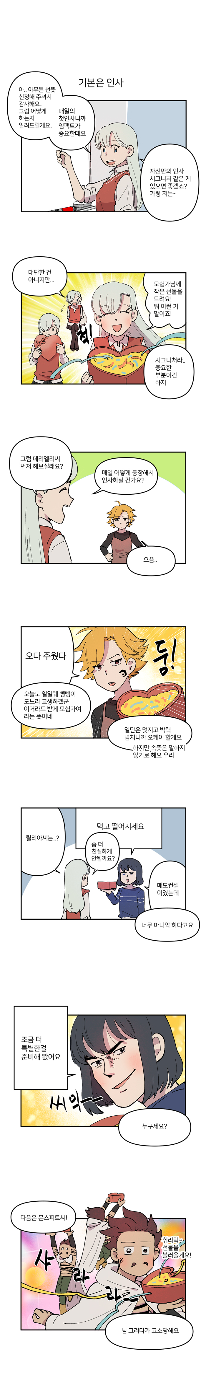 '선물을 드려요'편은 웹툰 속 세계관 내 리오네스 상사에서 2022년을 맡아 새로운 로그인 선물 담당 캐릭터를 뽑는다는 내용. 로그인 선물은 출시부터 지금까지 엘리자베스가 담당하고 있었기에 새로운 쇄신을 위한 새로운 시도를 한다는 콘셉트로 진행됐다.