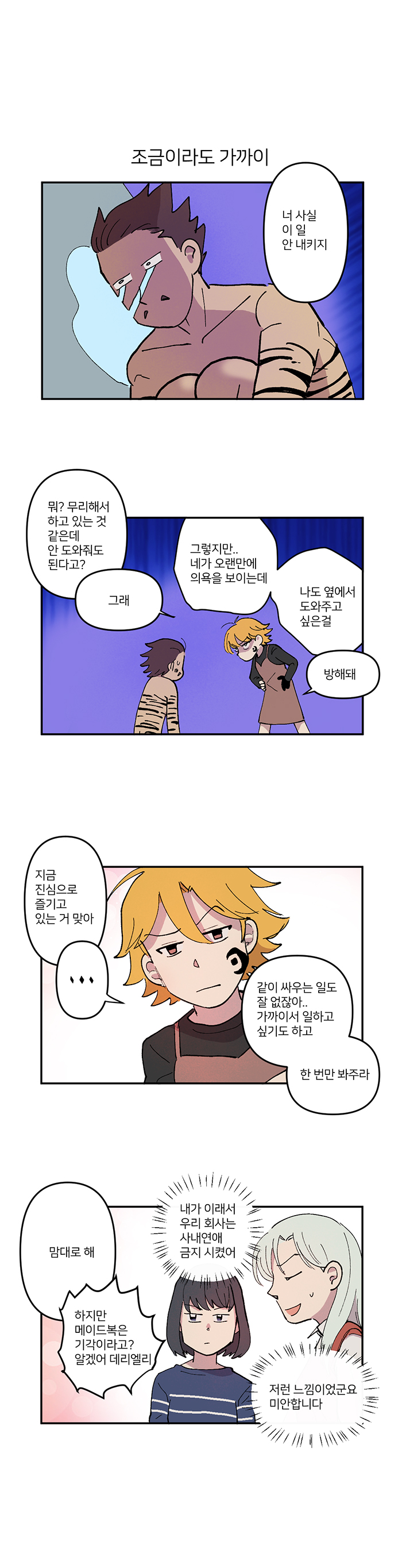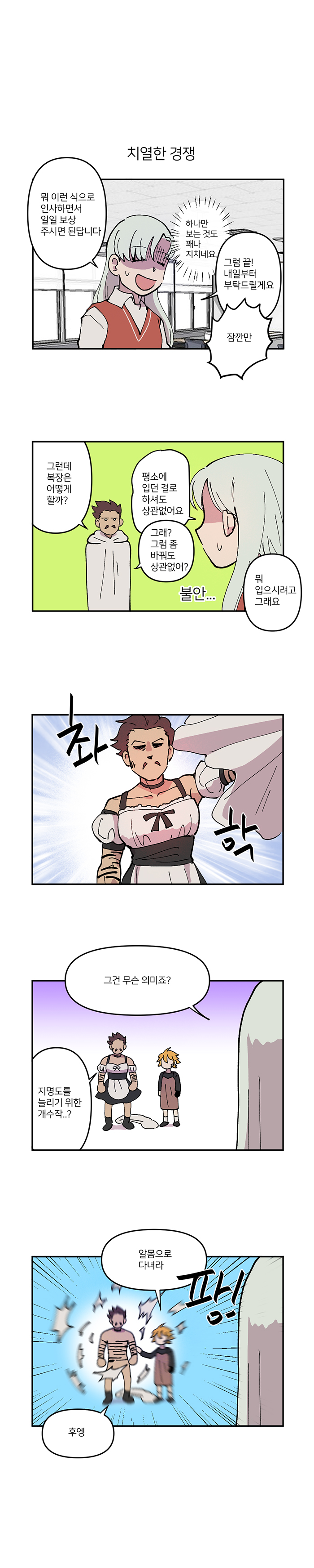 다들 새로운 일만 늘어난다는 핑계로 하길 꺼려했지만 데리엘리라는 의외의 인물이 하고 싶어한다는 것이 재미 포인트. 이를 시작으로 데리엘리를 좋아하던 몬스피트와 다른 회사 소속인 릴리아까지 등장해 이야기는 본격적으로 좌충우돌 산으로 가기 시작한다.