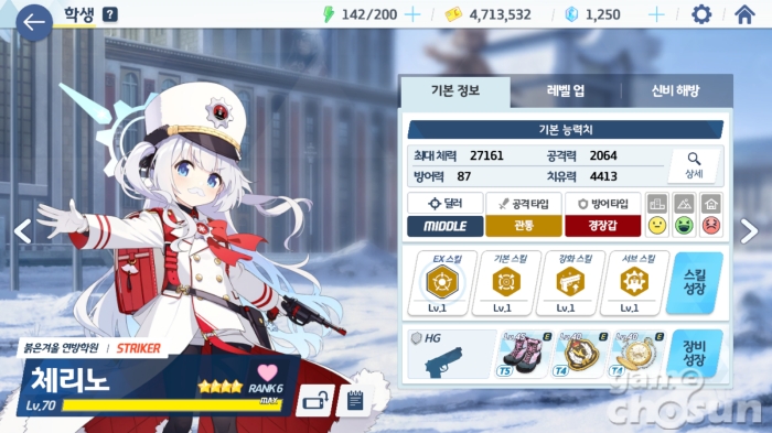 붉은겨울 연방학원의 학생회장 ★3 체리노와 서기관 ★1 노도카가 플레이어블 캐릭터로 추가된다. 체리노는 관통 속성 스트라이커로 코스트 회복력을 대량으로 올려주는 서브 스킬과 적 한 명의 치명 대미지 저항력을 낮추는 기본 스킬로 파티원의 화력을 집중할 수 있게 해준다.