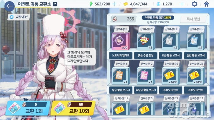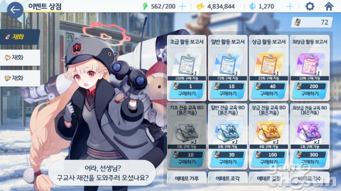 붉은 수염 훈장, 체룐카 초콜릿, 수염 크레이프는 이벤트 상점에서 레드윈터 전술 BD, 활동 보고서, 강화석, 청휘석, 오파츠 등 레드윈터 학생의 육성에 도움이 되는 아이템으로 교환할 수 있다.