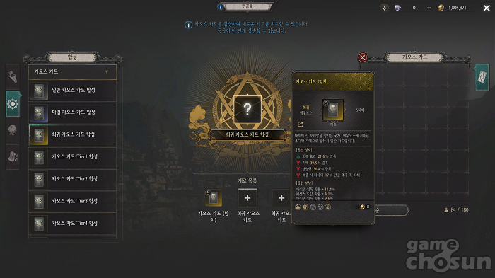 이에 자신이 희귀 등급 던전이 아니면 석상 경험치가 오르지 않는 경우가 아니라면 희귀 등급 카오스 카드를 무작정 지금 다 합성이나 던전 입장으로 사용하기보다는 훗날을 위해 아껴둘 필요성이 있어 보인다.