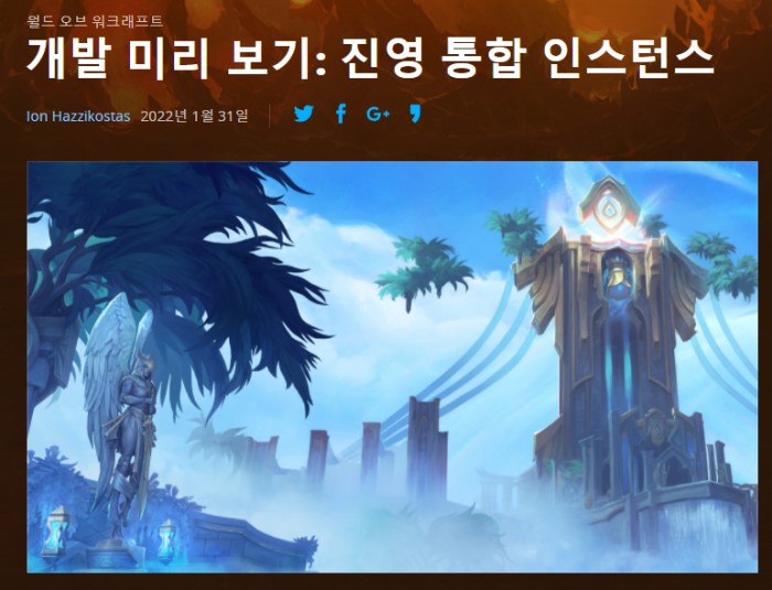 이언: 진영 통합 콘텐츠는 지난 몇 년 동안 유저분들의 요청 사항이었다. 물론 진영 플레이가 중요 가치관인 만큼 우려의 목소리도 있었다. 그래서 개발팀 내에서도 많은 고민이 있었다. 지난 여름에도 커뮤니티 반응에 신경 썼고, 월드 오브 워크래프트에 대해 다시 고민했다. 진영이 분리된 상황이 앞으로 게임 플레이에 중요한 요소일지 고민했다. 조정하는 작업이 많아 이번 업데이트에 대해선 보여드리지 못하지만, 추후 업데이트로 보여드리겠다.