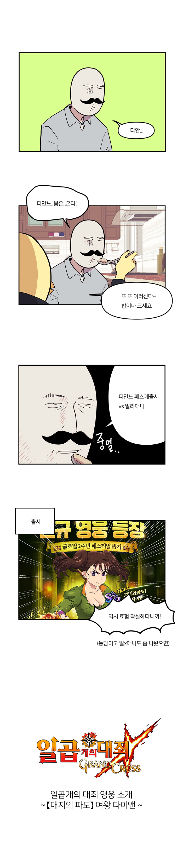 넷마블의 모바일 RPG '일곱 개의 대죄 : 그랜드 크로스(이하 일곱개의대죄)'에서 신규 웹툰 '다이앤.. 붐은.. 온다!'편이 공개됐다.
