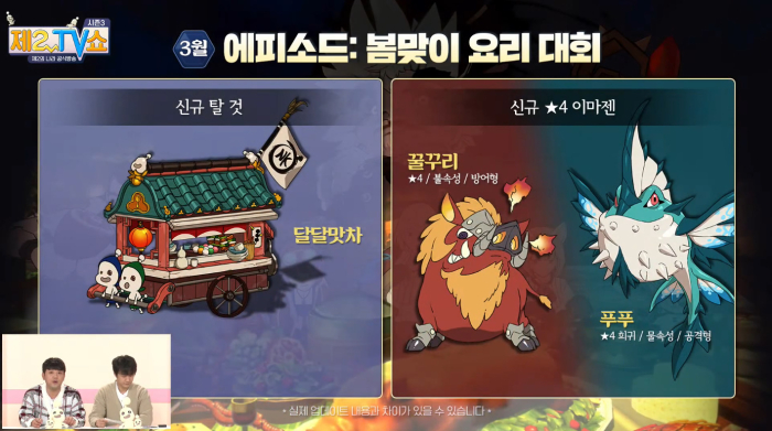 에피소드 추가와 함께 신규 탈 것인 '달달맛차'와 신규 4성 불속성 방어형 이마젠 '꿀꾸리', 4성 희귀 물속성 공격형 이마젠 '푸푸'가 공개됐다. 또한 신규 코스튬으로 각 직업의 요리사 코스튬과 스쿨룩 코스튬이 추가된다.