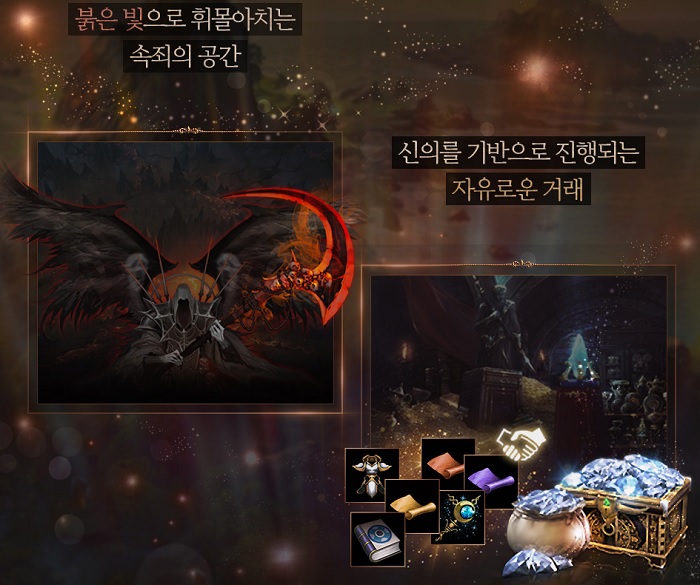 기사 및 다크엘프의 리부트 외에도 핵심 업데이트 요소 두 가지에 대한 힌트를 공개했다. 첫 번째 힌트는 카오틱 상태의 캐릭터가 사냥을 할 수 있는 공간 혹은 던전의 추가로 예상되며, 두 번째 힌트는 거래소를 통하지 않고 이용자 간 1:1 물품 교류가 가능한 자유로운 거래 시스템으로 보여진다.