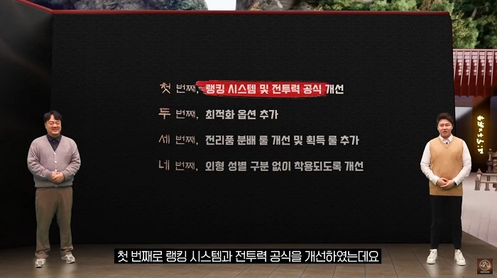 단순 업데이트 외에도 많은 부분이 개선된다. 랭킹 시스템이 도입돼 추가적인 보상을 얻을 수 있으며, 전투력 공식이 개선돼 더 높은 등급의 아이템을 꼈는데도 오히려 전투력이 하락하는 상황이 없어질 전망이다. 또한, 이펙트 효과 등을 온오프하는 등의 최적화 옵션이 추가되며, 전리품 분배 룰 개선 및 획득 룰이 추가됨에 따라 불합리했던 아이템 분배 방식에 숨통이 트일 전망이다. 추가로 외형 장비에 성별의 제한이 해제된다.