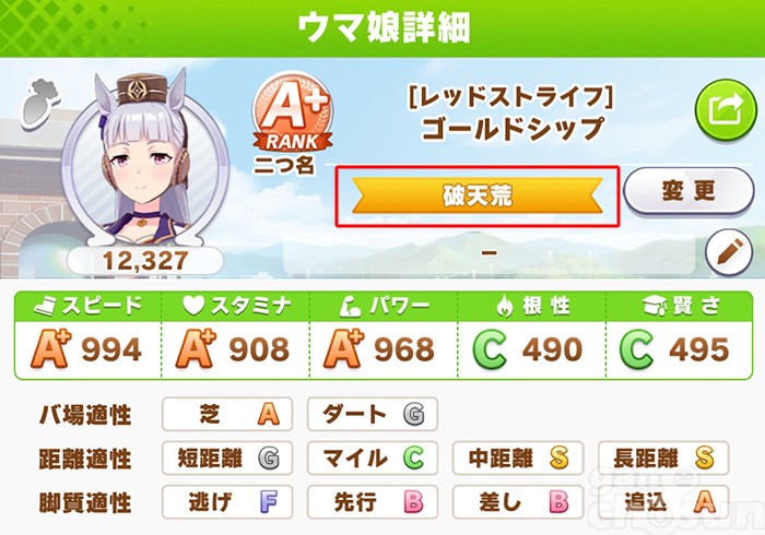 이러한 성격은 게임에도 그대로 반영돼 우마무스메 골드십은 종잡을 수 없는 캐릭터로 등장한다. 각종 이벤트에서 기분이 제멋대로 오르락 내리락 하고, 경주에서 1위를 하면 트레이너에게 다가와 드롭킥을 날리기도 한다. 골드십뿐만 아니라 다른 사람들의 기대를 꺾어 소심한 모습을 보여주는 라이스샤워, 수많은 명마를 배출한 '메지로 목장' 출신인 것을 반영해 아가씨 같은 성격을 보여주는 '메지로맥퀸' 등 경주마의 특징을 반영해 우마무스메의 성격을 구현하고 있다.