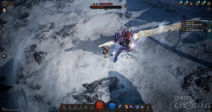 그리고 대망의 '고대의 수호자'를 만날 수 있었다. 고대의 수호자는 냉기 일색인 액트 5의 조커 같은 보스 몬스터로 번개 피해로 떡칠된 강력한 몬스터다. 지난 지면강타 빌드 육성 당시에는 말 그대로 '괴랄'한 패턴 덕분에 긴 시간 트라이를 하는 등 굉장히 높은 난이도의 몬스터였다. 특히, 한 방에 플레이어를 골로 보낼 패턴이 연달아 다수 발생하며, 플레이어의 이동에도 제약을 거는 등 여러모로 높은 난이도를 가진 보스로 악명이 높았다.