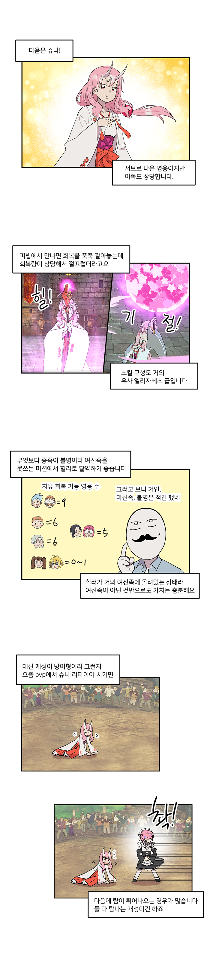 새로 등장한 신 영웅은 상당히 강력한 영웅으로 평가받고 있다. 마왕 리무르의 경우 3중첩으로 최대 600%가 넘는 관통 공격이 가능해 엄청난 대미지를 기대할 수 있고, 슈나는 개성을 통해 아군 '종족불명' 종족을 보호할 수 있고, 관통력을 보조하거나 스턴을 쓰는 등 보조 영웅으로 각광받고 있는 중이다.
