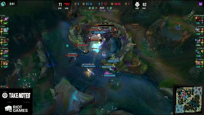 바론을 두고 벌어진 한타에서도 라칸이 슈퍼 플레이를 보여주며 T1의 주력 딜러를 아무것도 못하게 제압, 상황은 반전되어 승기가 G2로 넘어간다.