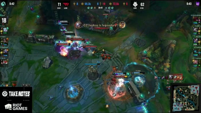 이어진 미드 대치에선 시야를 먹으려던 렐을 G2 팀 5인이 순식간에 파고들며 잘리면서 시작하는 한타가 벌어진다. 격차가 나도 4:5를 이기긴 힘들어 G2가 한타를 승리, 경기는 일방적인 상황에서 팽팽한 접전으로 흘러간다.