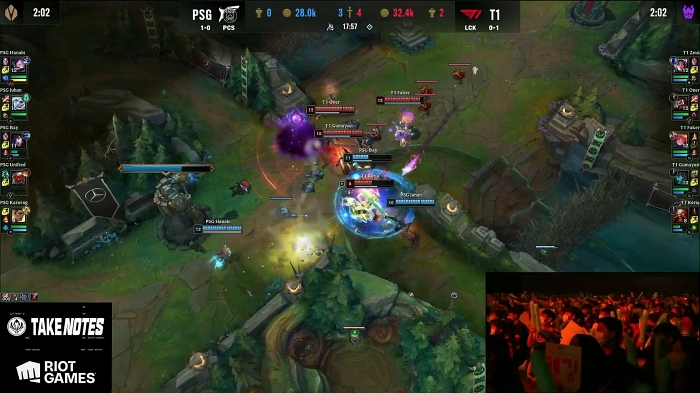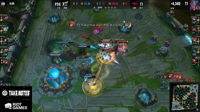 하지만 PSG도 만만치 않았다 하나를 내주면 다른 하나를 챙겨간다는 각오로 전령을 내주면 용을 얻고, 탑 라인이 밀리면 바텀 라인에서 킬을 따는 등 승부가 동률이 되며 팽팽하게 흘러간다.