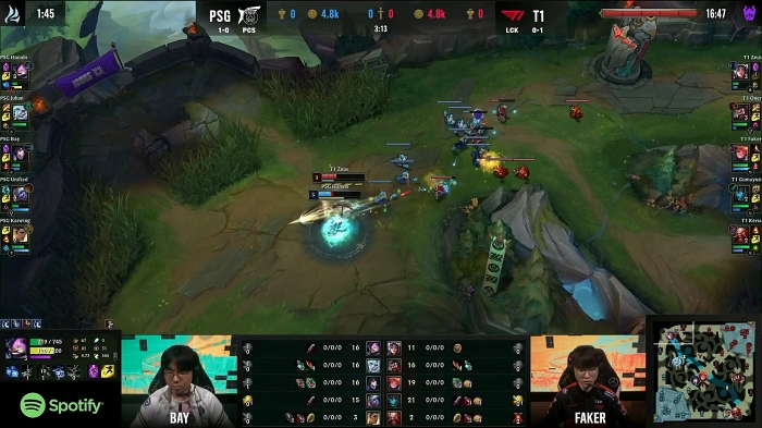 20일 부산 벡스코(BEXCO)에서 '미드 시즌 인비테이셔널 2022(Mid-Season Invitational, MSI 2022) 럼블 스테이지 1일차 경기가 진행됐다. 이날 마지막 경기에서는 T1과 PSG가 맞붙었다.