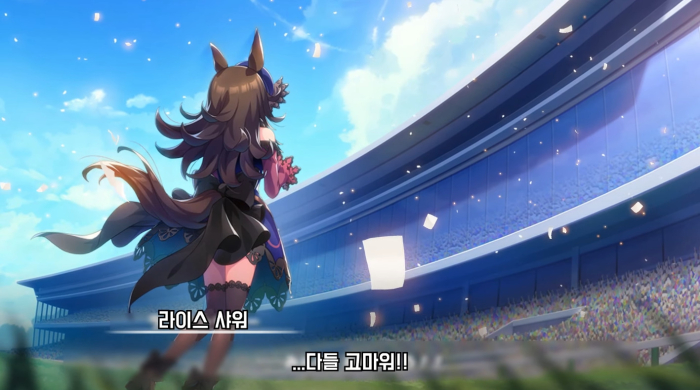 신혼부부의 행복을 바라는 의식인 '라이스 샤워'라는 이름 그대로 따뜻한 마음씨로 많은 트레이너에게 행복을 주는 우마무스메 라이스 샤워. 덕분에 라이스 샤워는 평범한 성능, 높은 육성 난이도에도 불구하고 많은 유저가 선택하는 우마무스메로 인정받고 있다.