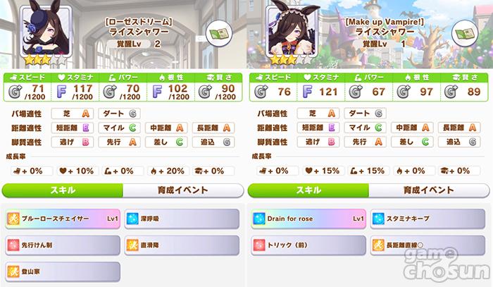 성능은 양쪽 다 평범한 중장거리 선행마 = 게임조선 촬영
