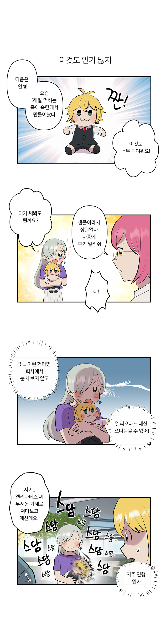 이번 작품은 일곱개의대죄 외전격 작품으로 작품 내 세계관인 리오네스 상사에서 일곱개의대죄 관련 상품 개발하는 것이 주요 내용. 캐릭터 굿즈에서 흔히 볼 수 있는 휴대폰 케이스, 스트랩, 이어폰 케이스, 머그컵 등을 작품 내에서 찾아볼 수 있다.