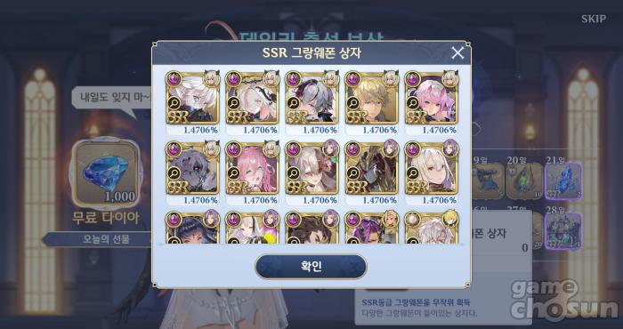 SSR 그랑웨폰이 다이아 500개? 역대급 세일 = 게임조선 촬영
