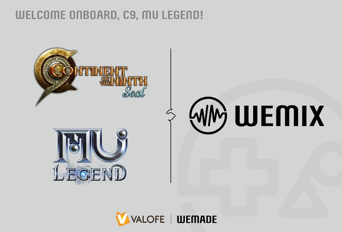 [자료제공 = 위메이드] 위메이드(대표 장현국)와 밸로프(대표 신재명)는 MMORPG <C9> <뮤 레전드>(MU Legend) 2종의 위믹스 플랫폼 온보딩 계약을 체결했다.