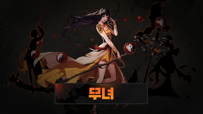 무녀는 염주를 주력으로 사용하며 신룡의 대행자로서 악한 것을 멸하고 신탁을 내리는 동양적인 색채의 캐릭터다. 원거리에서 적이 다가오지 못하게 부적으로 제압하고 다양한 원거리 스킬로 효과적으로 적을 처리할 수 있는 캐릭터다.