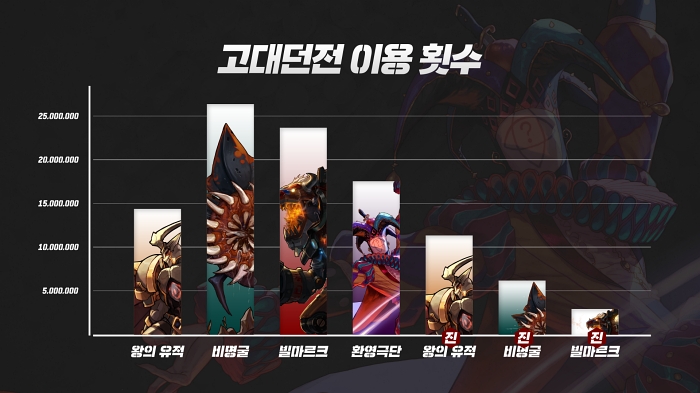이어 고대던전에 대해서는 지옥파티 에픽 파밍 등 최종 장비를 파밍 하기 전 도움이 되는 장비로 구상했다. 이에 비해 진 : 고대 던전은 이용횟수가 현저히 떨어지는 상태라며 더 나은 던전과 유저 이탈을 막기 위해 성장 동선과 가이드를 보강할 예정이라고 밝혔다.
