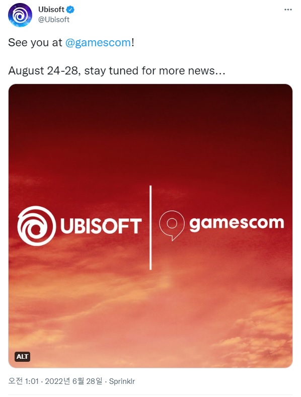 유비소프트는 지난 28일 공식 SNS 채널을 통해 "게임스컴에서 만납시다", "8월 24일부터 28일, 더 많은 뉴스를 확인해주세요"라고 언급하면서 게임스컴 2022 참가를 공식적으로 선언했다. 소니와 닌텐도, 테이크투, 액티비전 블리자드 등 주요 대형 게임사가 게임스컴 2022의 불참을 선언한 가운데, 유비소프트의 참가는 많은 게이머의 이목을 사로잡고 있다.