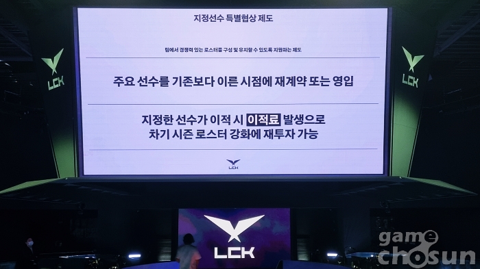 A. 지정 선수 특별 협상 제도는 LCK 리그에서만 적용된다. 해외 선수를 지정하거나 그런 경우는 아직 적용 계획이 없다. 다만 향후에 해외 리그에서 유사한 제도를 만든다면 당연히 LCK 또한 그 제도를 공유할 필요가 있을 거라고 생각한다.
