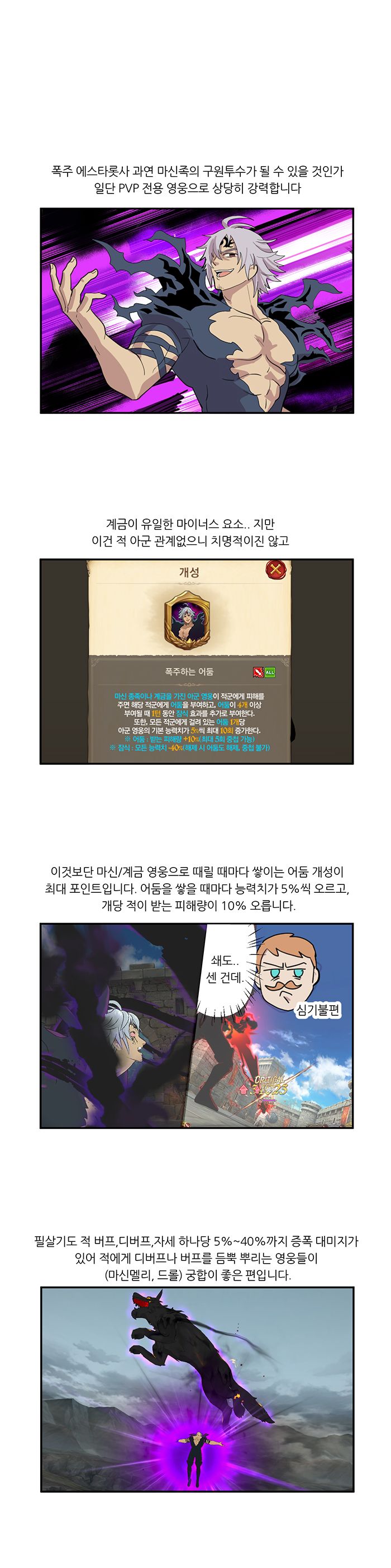 폭주 에스타롯사의 등장으로 7대죄와 여신족 신규 영웅들이 상당히 강력하게 등장하면서 상대적으로 천대받던 마신족덱이 다시 강력해지면서 일곱개의대죄의 PVP 경향이 다시금 바뀔지 주목된다.