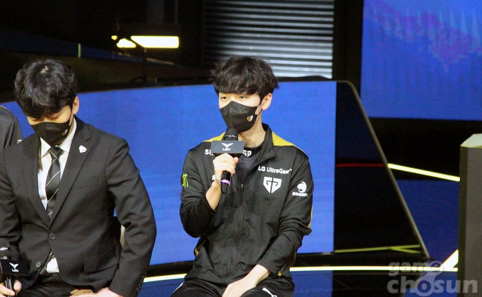 젠지 '도란' 최현준 선수 : 앞서 다른 선수가 말한 것과 비슷하게 최고의 탑 라이너라고 평가받는 선수를 내가 결승에서 이긴다면 좋은 평가로 이어진다 생각한다. 그렇기에 꼭 이겨야 하는 상대다.