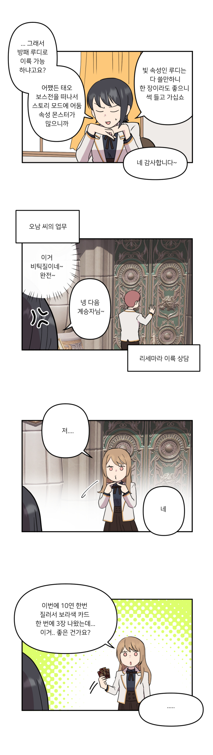 * 본 웹툰은 게임조선과 웹툰 작가 국도 님의 협업으로 제작되고 있으며, 넷마블의 세븐나이츠 레볼루션 공식 설정과 상이할 수 있습니다.