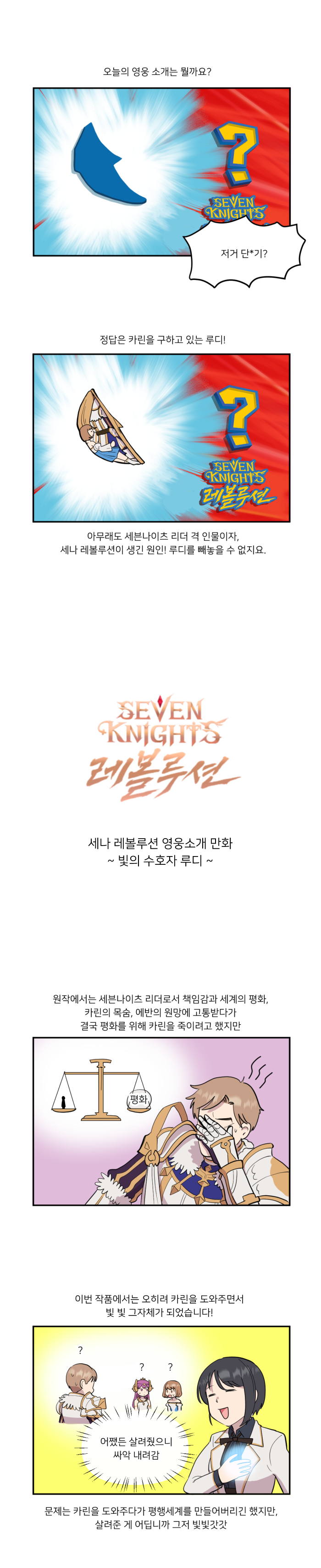 넷마블이 서비스하는 MMORPG '세븐나이츠 레볼루션'의 웹툰 '세나 레볼루션 영웅 소개 만화' 3편 '빛의 수호자 루디'가 공개됐다.