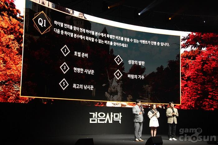 하반기 업데이트 계획 및 개발자 토크 진행 이후에는 온라인 및 오프라인으로 022 하이델 연회에 참가한 모든 이용자가 함께 즐기는 라이브 퀴즈쇼가 진행됐다. 라이브 퀴즈쇼는 제한 시간 내에 퀴즈를 풀고 이용자들의 전체 정답률에 따라 보상을 획득할 수 있는 형태로 펼쳐졌다.