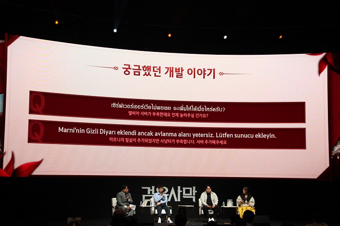 행사장 입장 전에는 검은사막과 관련된 이용자의 사연을 남길 수 있었으며, 앞서 언급한 미니 게임 체험을 통해 다양한 경품을 제공하면서 연회 분위기를 달궜다.