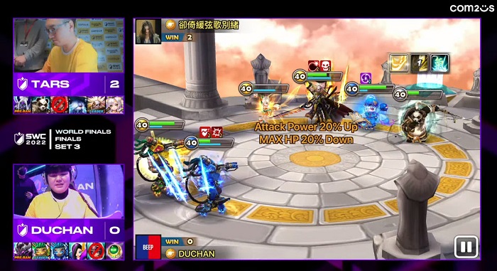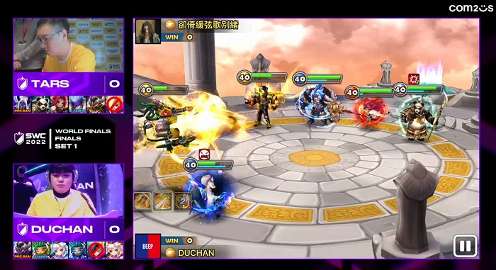 두찬 선수는 중국의 타스 선수와 SWC2022 우승 트로피와 100,000 달러의 우승상금을 놓고 격돌했으며,