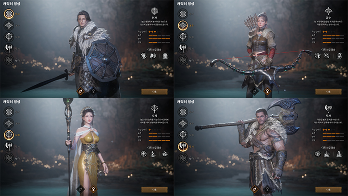 A. 론칭 때는 전사, 투사, 궁수, 사제 이렇게 네 가지 직업을 선보이고, 론칭 후 일정 시기마다 직업들을 추가할 예정이다. 처음 직업을 고르고 게임을 시작한 후에 어느 정도 플레이를 하고 나면 부직업을 나머지 직업 중에 선택할 수 있게 된다. 이때 내가 선택한 직업에 맞춰 어떤 부직업을 선택하냐에 따라 공통 스킬 하나가 추가되어 전투 스타일에 변화를 주고 성장 방향에 도 영향을 줄 수 있다.