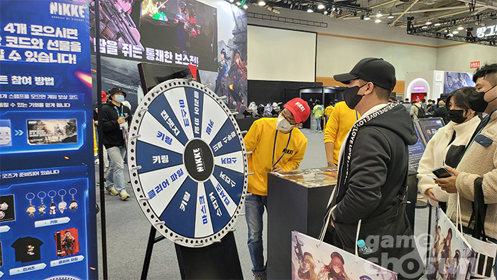 제2 전시장에 자리한 레벨인피니트 부스에서는 사전에 스마트폰에 설치한 니케를 인증한 후 다양한 이벤트에 참여할 수 있다. 실제 사격을 즐겨보는 이벤트 코너부터 코스프레쇼, 포토존 등을 운영한다. 또한, 부스에서 이벤트에 참여한 사람을 대상으로 룰렛을 돌려 키링이나 클리어파일, 마스크, 캔뱃지 등의 니케 굿즈를 얻을 수도 있다.