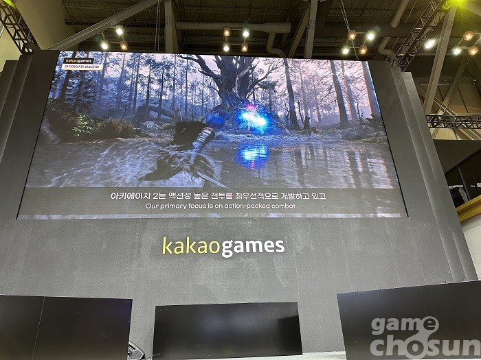 카카오게임즈 부스에서 최초 공개된 아키에이지2의 영상에서는 역동성이 넘치는 액션과 자연스러운 모션, 그리고 뛰어난 비주얼을 확인할 수 있는 전투 모습을 담았으며, 아키에이지1에서 만나볼 수 있었던 주요 배경과 지역도 등장해 많은 게이머의 이목을 사로잡았다.