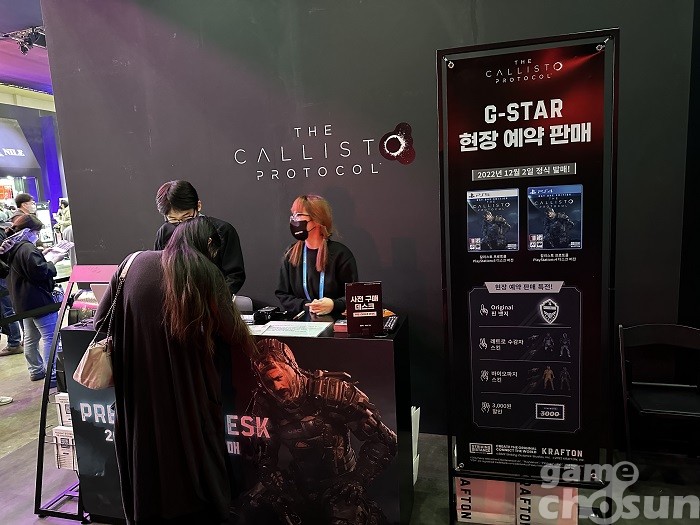 또 라이브 무대에서는 실시간으로 칼리스토 프로토콜의 인게임 정보를 소개했으며, 현장 사전 구매 데스크를 마련해 방문객에게 각종 특전을 제공했다.