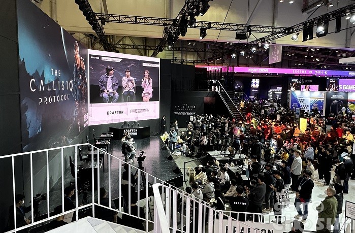 크래프톤은 '데드 스페이스' 시리즈의 아버지라 불리는 글렌 스코필드의 차기작 '칼리스토 프로토콜'을 방문객이 직접 플레이해볼 수 있는 시연 무대를 마련했다. 수많은 방문객이 칼리스토 프로토콜을 만나보기 위해 크래프톤 부스로 향했으며, 대기줄은 장사진을 이루면서 올하반기 최고 기대작임을 입증했다.