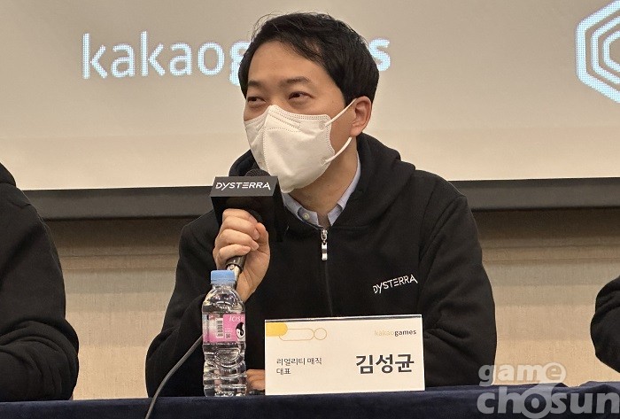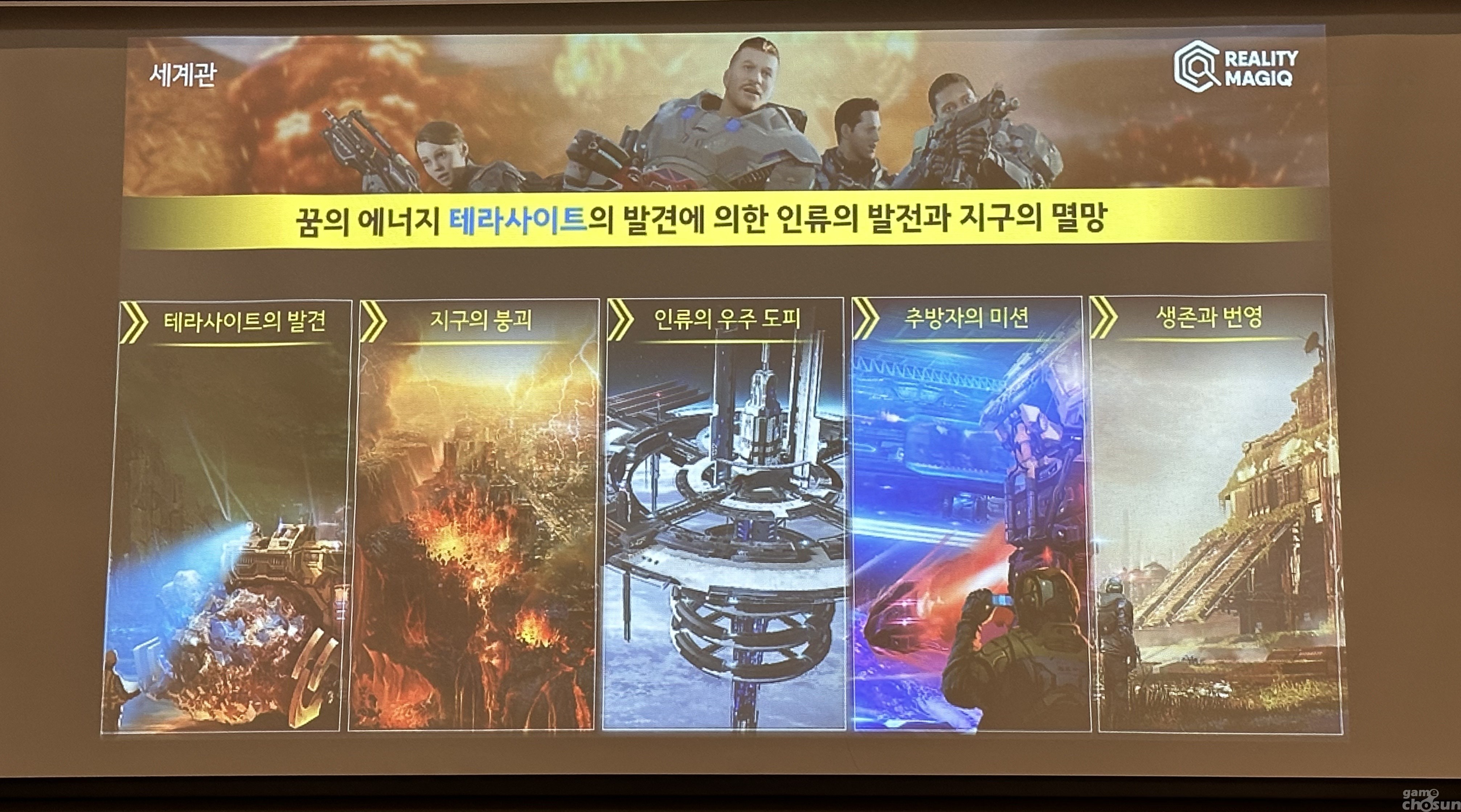 본격적인 인터뷰에 앞서 리얼리티 매직 김성균 대표가 자사가 개발한 '디스테라'에 대해 소개했다. 플레이어는 머지 않은 미래에서 꿈의 에너지인 테라사이트를 발견하고, 테라사이트에 의한 발전과 멸망을 다루고 있다. 테라사이트는 지구 지각 하부 맨틀 근처에서 채취할 수 있는데, 이를 무분별하게 채취하다보니, 지구의 지각이 점차 불안정해졌으며, 지구 표면 전체가 붕괴되는 결과를 가져와, 인류는 우주 궤도상에서 새로운 보금자리를 만들게 된다.