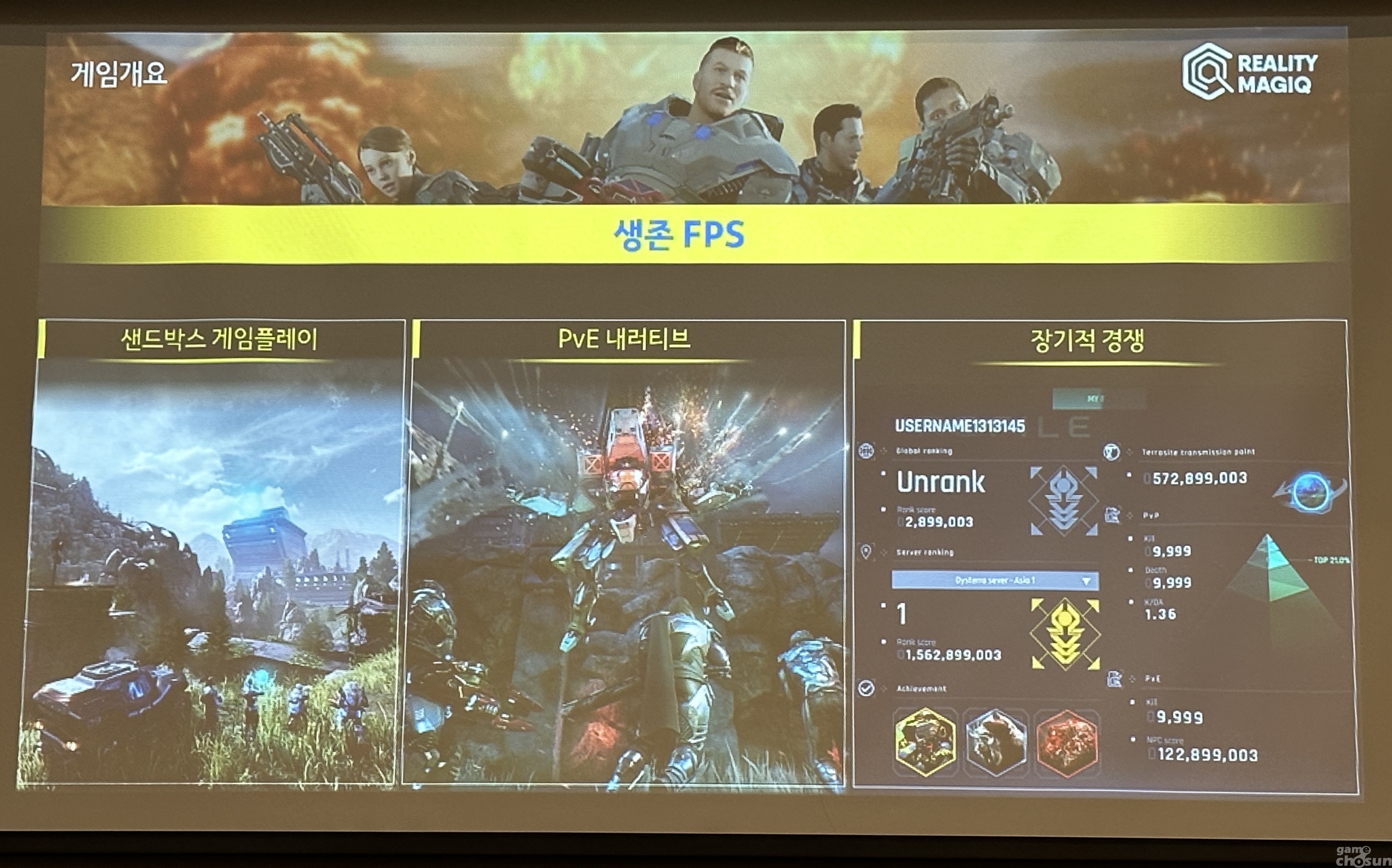 김성균 대표 : 우선 가장 중요한 것은 진입 장벽 측면에서 기존 FPS 유저들이 쉽게 정착할 수 있도록 많이 고민을 했다. 그리고 두 번째로 저희 개발팀 모두가 FPS 마니아 이다보니, 정말 슈팅에 대한 카타르시스를 느낄 수 있도록 하면서 그 안에 생존이 녹아들 수 있게끔 하는 것에 개발 목적이 있었다. 즉 슈팅 플레이 중심 게임이다.
