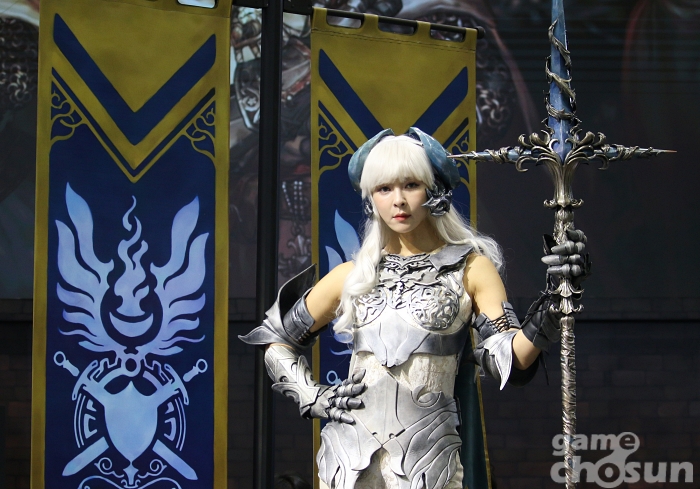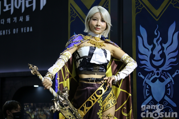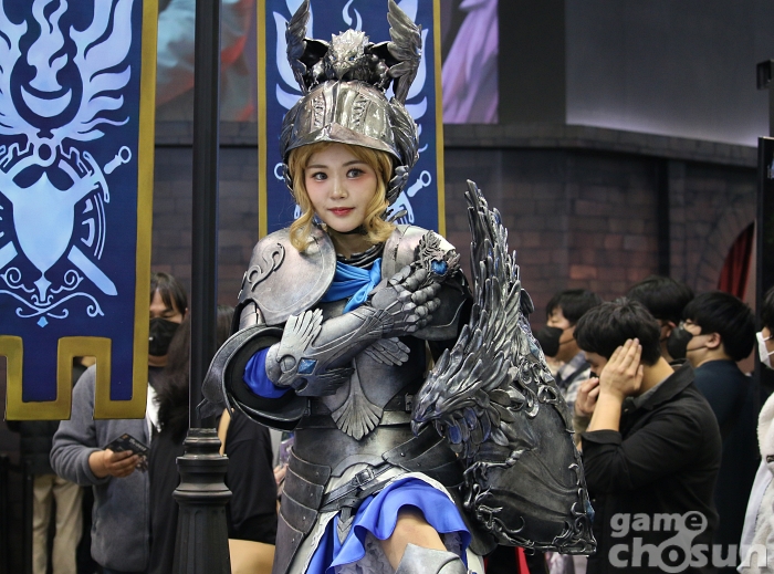 플린트는 17일 부산 벡스코에서 개최한 지스타 2022에서 '별이되어라2: 베다의 기사들' 캐릭터의 코스튬 플레이를 선보이고 있다.