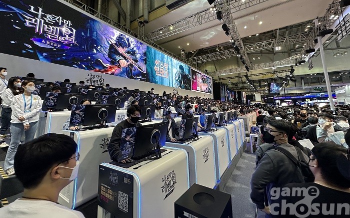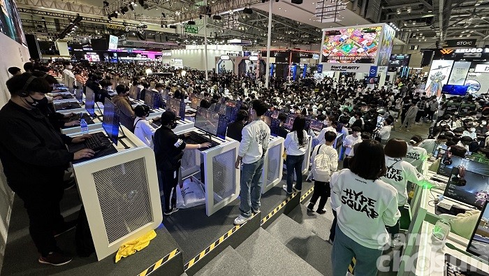 볼거리와 즐길거리로 가득한 지스타 2022에서 가장 많은 관람객이 모인 곳 중 하나는 넷마블 부스다. 해당 부스에서는 넷마블의 신작 '아스달 연대기'와 '나혼자만 레벨업', '파라곤: 디 오버 프라임', '하이프스쿼드' 등 신작 4종을 시연해볼 수 있었음에 따라 관람객들이 큰 관심을 가졌다.