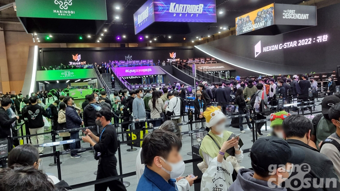 넥슨 부스의 경우 300여개 부스를 모두 시연 공간으로 제공할 정도로 많은 유저를 수용할 수 있게 구성했음에도 빼곡한 대기열을 채우며 인기를 실감 나게 하고 있다. 특히 퍼스트 디센던트의 경우 18세 이상만 참가할 수 있음에도 4시 30분부터 대기열이 시간 관계상 마무리될 정도로 높은 관심을 받고 있다.