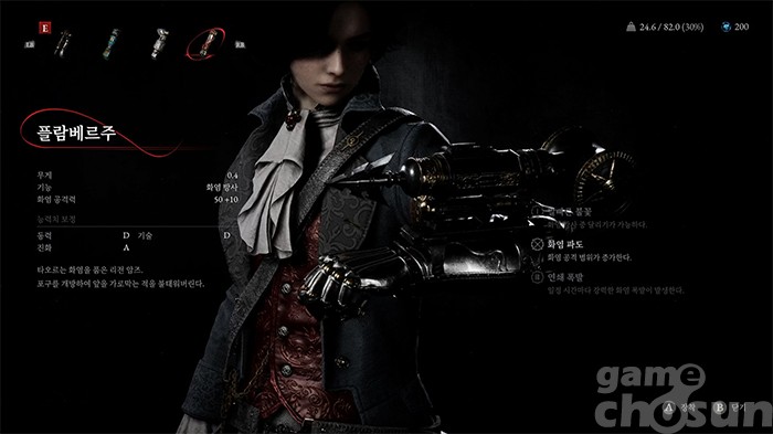 피노키오 커스터마이징은 게임을 진행하면서도 계속 이어진다. 먼저 피노키오가 적들을 공격할 때 사용하는 무기는 최대 2개까지 착용하며, 전투 중 버튼 하나로 전환해 상대에 맞춰 공격할 수 있다. 여기에 피노키오의 독특한 장비인 '리전 암즈'로 적을 감전시키거나 불태우는 등 다양한 공격이 가능하다.