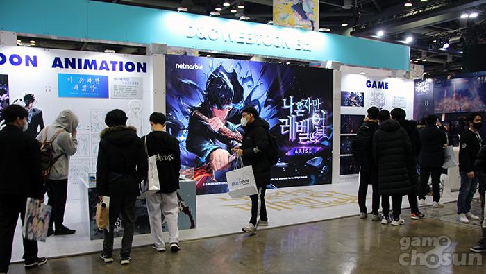 디앤씨미디어 부스에 마련된 나 혼자만 레벨업:ARISE 이벤트 부스 = 게임조선 촬영