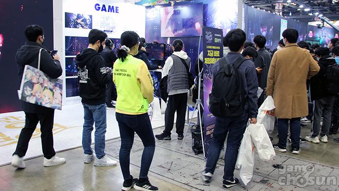 게임 시연은 PC 환경에서 진행됐으며, 체험을 위해 많은 사람이 몰렸다 = 게임조선 촬영